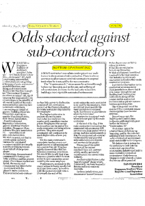 The clause was unfair. It prevented many disputes over sub-contractor’s quality of work from being resolved by litigation. A common scenario was a developer who withheld payment because of alleged defective work. But only a small portion of the payment withheld represented main contractor’s income. The larger portion represented value of sub-contract work. Because of the ‘pay-when-paid’ clause, the sub-contractor was not entitled to sue for the value of sub-contract work when the developer had not paid the main contractor for it.